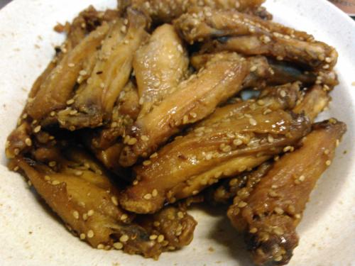 豚肉が残っていて、レタスがあったので、肉を湯がいて冷しゃぶ風にし、冷凍のサバを焼いて煮びたし、冷凍のハンバーグとチーズでグラタン風にして、チキンバーはそもそも冷凍品です。