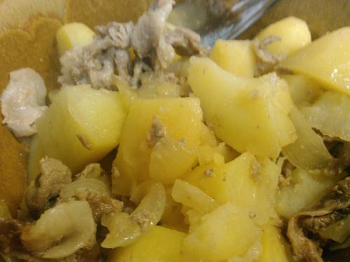 で、肉と玉ねぎを混ぜてチンして、それにジャガイモを加えて混ぜたが肉もほぐれやすくて良いかもです。